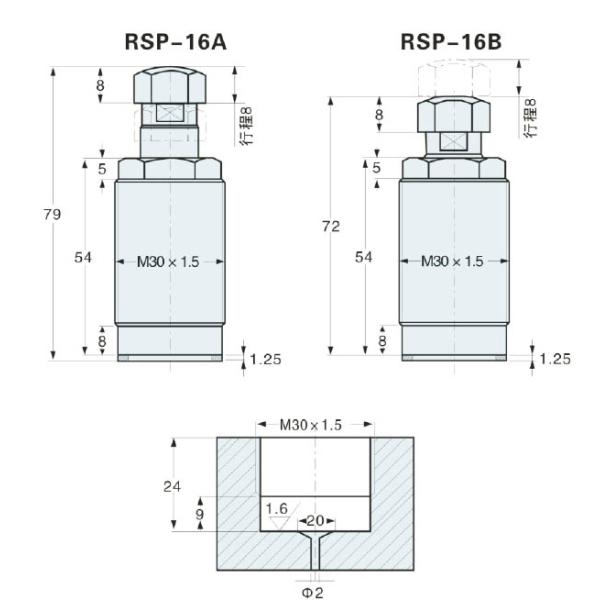 1.Type A: Underward Clamping Support. At the initial position, the support head is at the uppermost end under the action of the internal spring. When working, the workpiece is pressed down by gravity of workpiece to make support head synchronously downward. When the workpiece is placed securely, the support head stop going down. After the air pressure is applied, the support cylinder is locked to provide support for the workpiece and stop running.